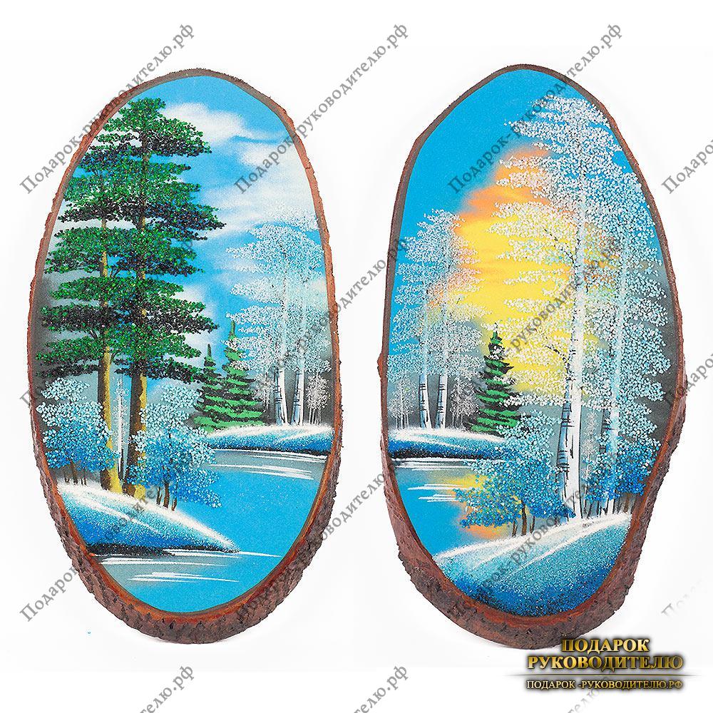 Магазин подарков и сувениров → Каталог товаров → Картины, панно, плакетки → Картины → Панно на срезе дерева "Зима" вертикальное