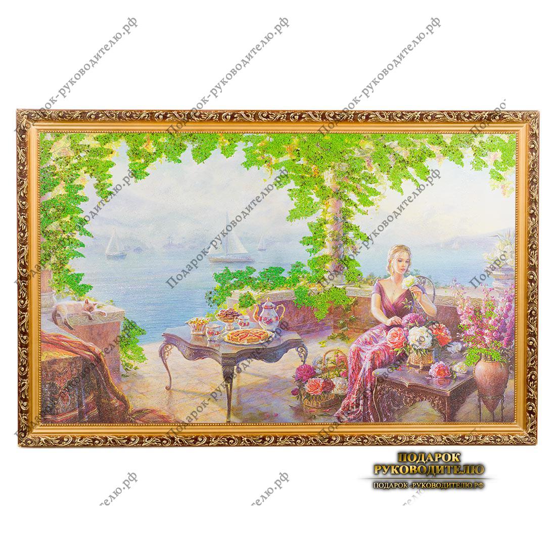 Репродукции картин известных художников выполнены на высококачественной текстурной бумаге имитирующей натуральный холст и масляную живопись с ручным нанесением каменной крошки из уральских природных камней (змеевик, яшма, мрамор, пирит, магнезит, офиокальцит и др).